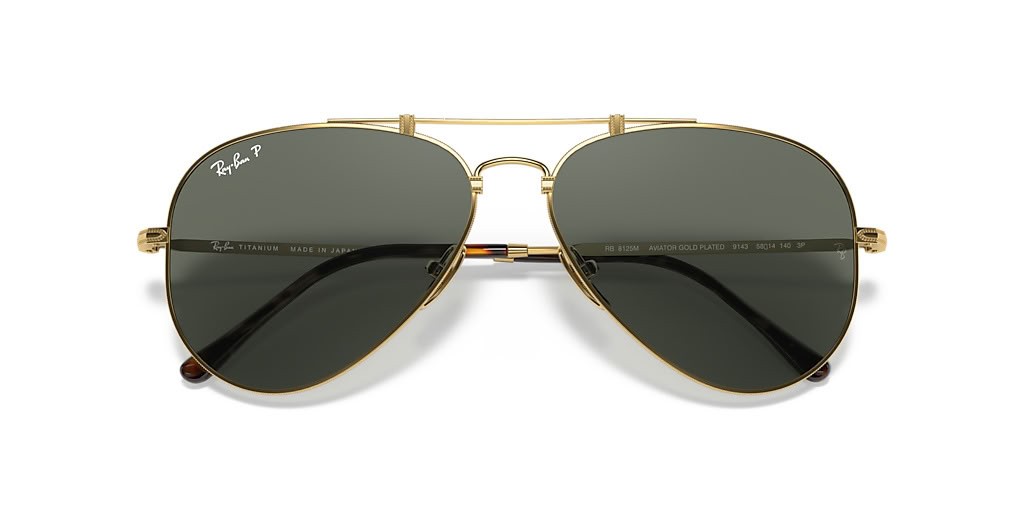 Ray-Ban RB8125M الطيار التيتانيوم XL (58 - 14) مع الأخضر العدسات الذهب الإطار النظارات الشمسية