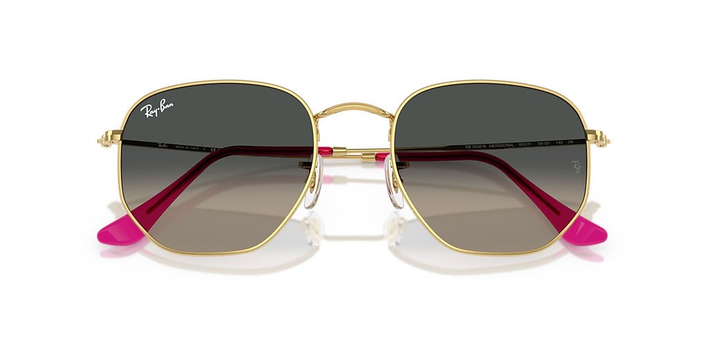 Ray-Ban RB3548N Hexagonální s Plochou Čočky M (51 - 21) s Šedá čočky a Zlatý rám sluneční Brýle