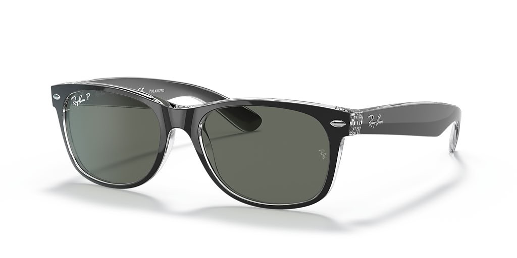 Ray-Ban RB2132 New Wayfarer Classic-M (55 - 18) med Grønne linser og Sort ramme Solbriller