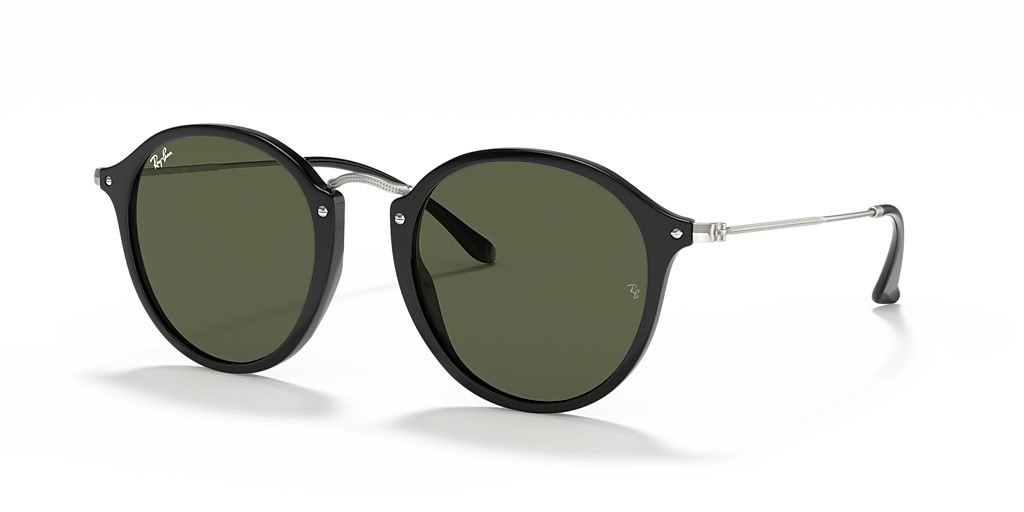 Ray-Ban RB2447 Runde Fleck XL (49 - 21) med Grønne linser og Sort ramme Solbriller