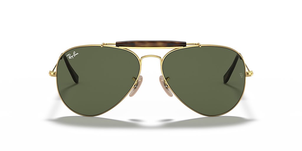 Ray-Ban RB3029 Outdoorsman Havana Samling XXL (62 - 14) med Grønne linser og Guld ramme Solbriller