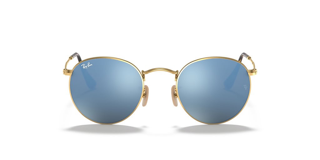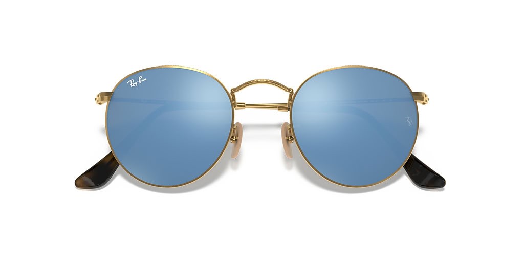 Ray-Ban RB3447N Runde Flade Linser S (50 - 21) med Blå linser og Guld ramme Solbriller