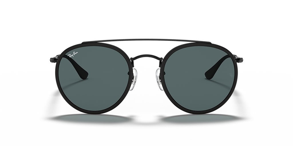 Ray-Ban RB3647N Runde Dobbelt Bro M (51 - 22) med Blå linser og Sort ramme Solbriller