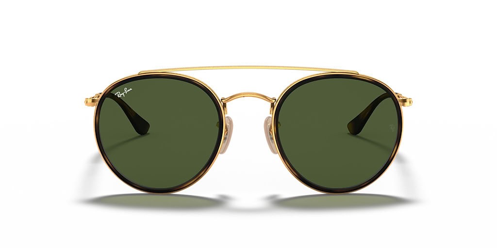 Ray-Ban RB3647N Runde Dobbelt Bro M (51 - 22) med Grønne linser og Guld ramme Solbriller
