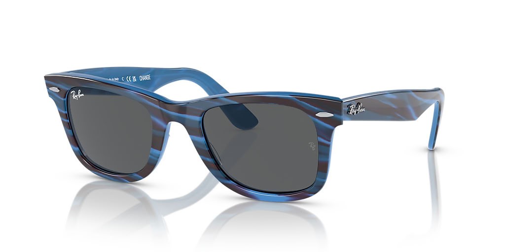 Ray-Ban RB2140F Original Wayfarer Ändern L (52 - 22) mit Grauen Gläsern und Blau-Rahmen und Sonnenbrillen