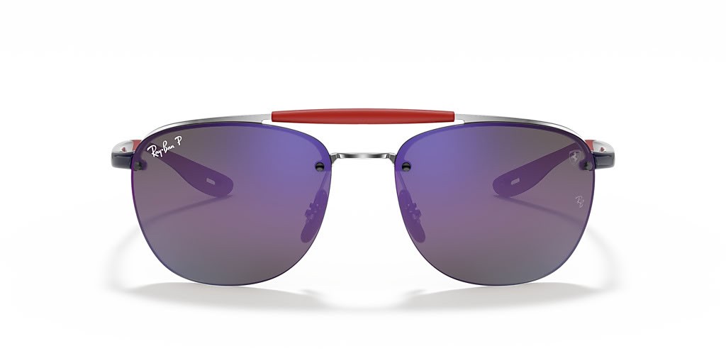 Ray-Ban RB3662M Scuderia Ferrari Collection XL (59 - 17) mit Blauen Gläsern und Silber-Rahmen-Sonnenbrille