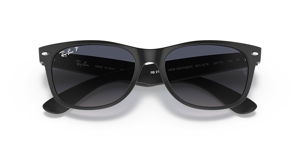 Ray-Ban RB2132F New Wayfarer Κλασικό M (55 - 18) με Μπλε φακούς και Μαύρα γυαλιά Ηλίου πλαισίων