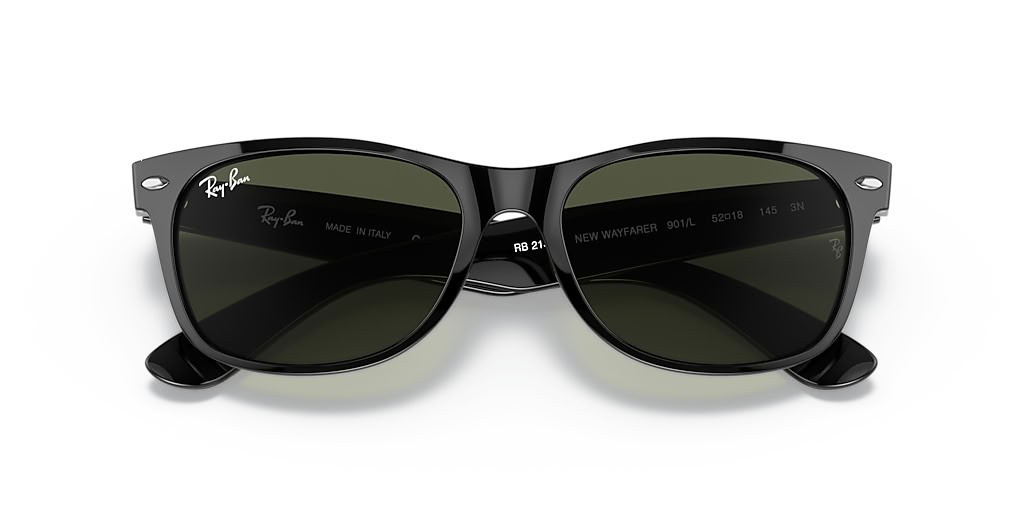 Ray-Ban RB2132F New Wayfarer Classic M (55 - 18) with Green lenses and Black frame Sunglasses