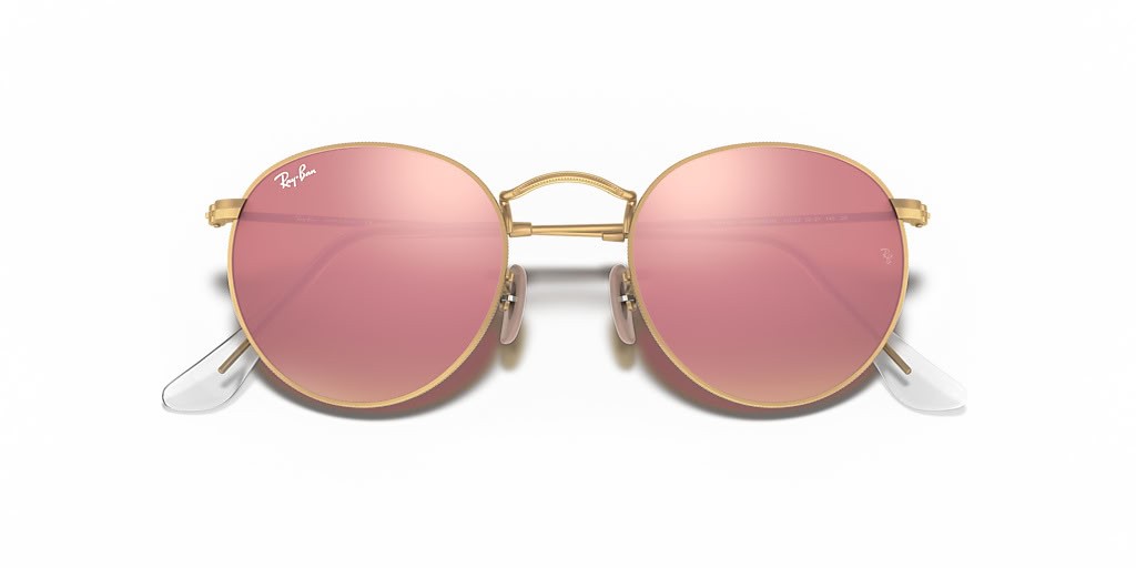 Ray-Ban RB3447 Round Flash Lenses L (53 - 21) with Brown lenses and Gold frame Sunglasses