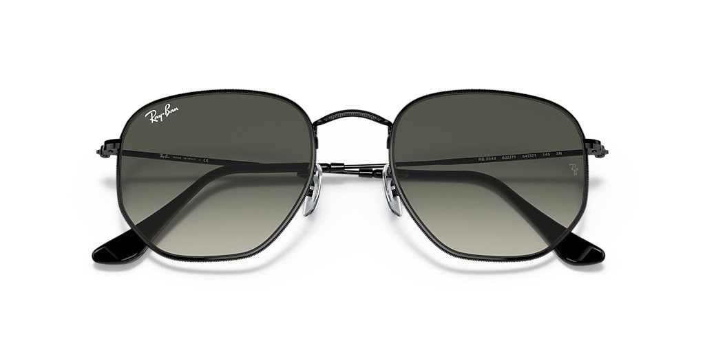 Ray-Ban RB3548 Hexagonal M (51 - 21) con Gris y lentes de marco Negro, Gafas de sol