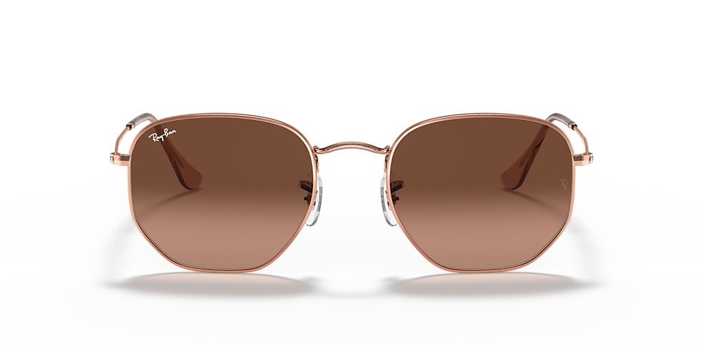 Ray-Ban RB3548N Hexagonal Plana Lentes M (51 - 21) con lentes Marrones y Cobre Gafas de sol de montura
