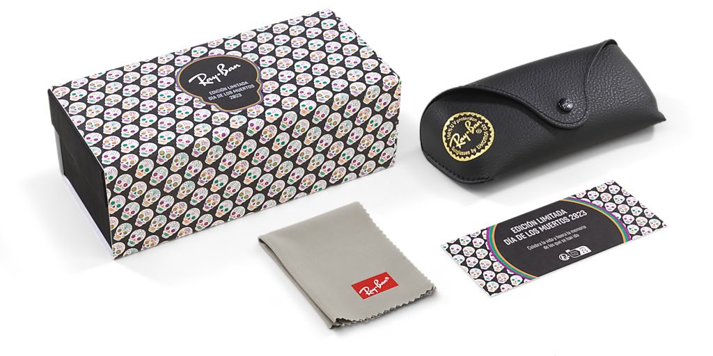 Ray-Ban RB0840S Dia De Muertos Mega Wayfarer M (51 - 21) Vihreä linssit ja Musta runko Aurinkolasit