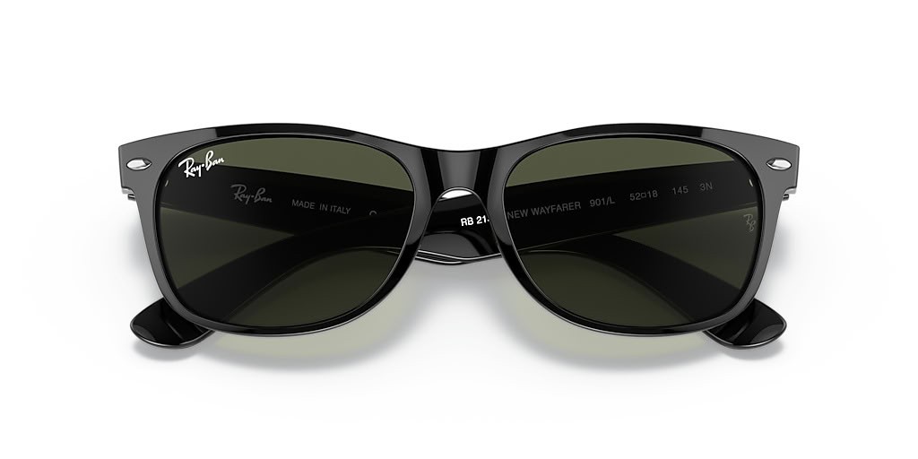 Ray-Ban RB2132 New Wayfarer Classic-M (55 - 18) Vihreä linssit ja Musta runko Aurinkolasit