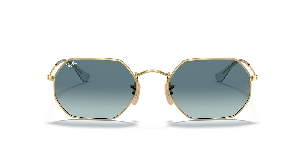 Ray-Ban RB3556N Octogonale Classique L (53 - 21) avec le Bleu de lentilles et d'Or frame Lunettes de soleil