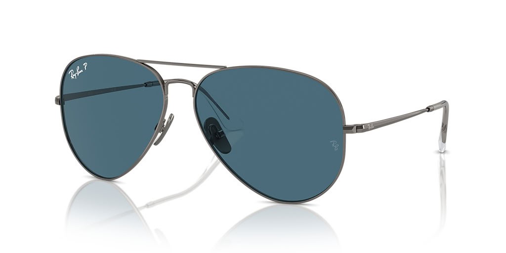 Ray-Ban RB8089 Aviator Titanium XXL (62 - 14) avec le Bleu de lentilles et de Lunettes de soleil de cadre en Argent