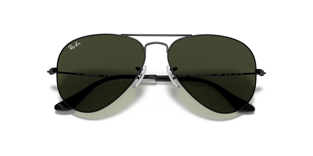 Ray-Ban RB3025 the Aviator Clasaiceach XL (58 - 14) le Glas lionsaí agus Dubh fráma Sunglasses