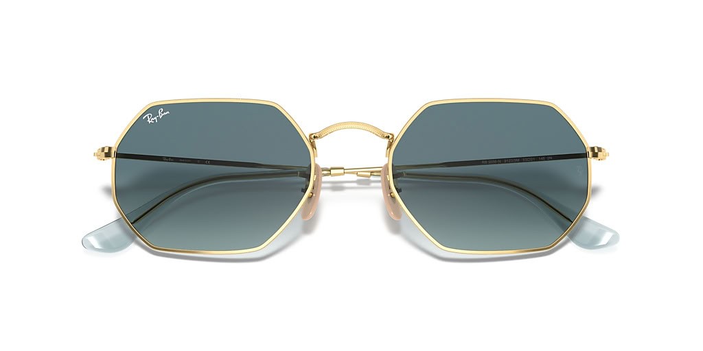 Sunčane naočale Ray-Ban RB3556N Octagonal Classic L (53-21) s plavim staklima i zlatni okvir