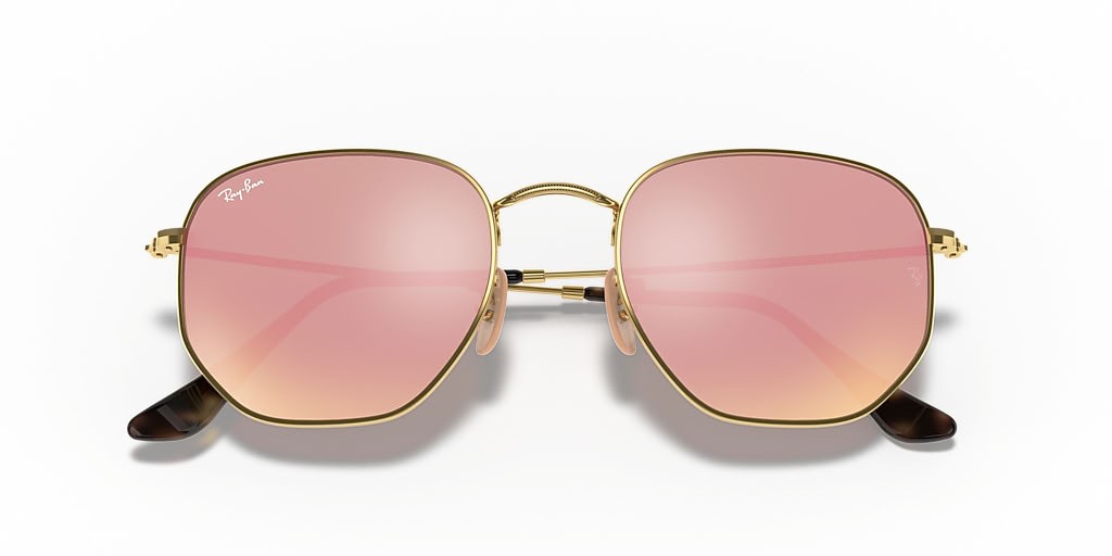A Ray-Ban RB3548N Hatszögletű Lapos Lencse S (48 - 21) Barna lencse, Arany keret Napszemüveg