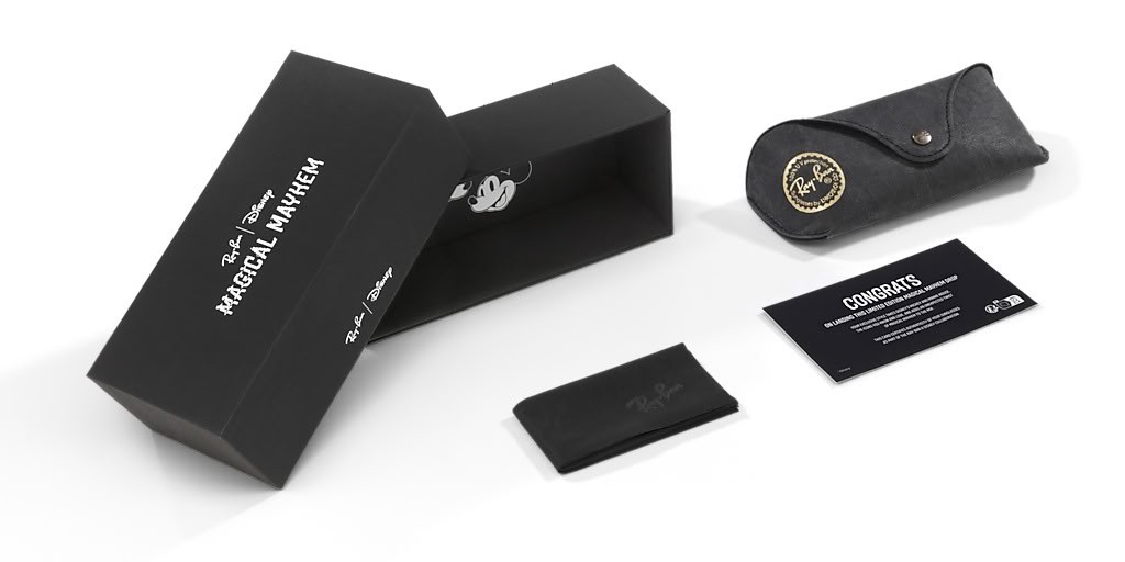 Ray-Ban RB0840S Mega Wayfarer Disney Mickey & Minnie Mouse Decostruito M (51 - 21) con lenti Grigio e Nero frame Occhiali da sole