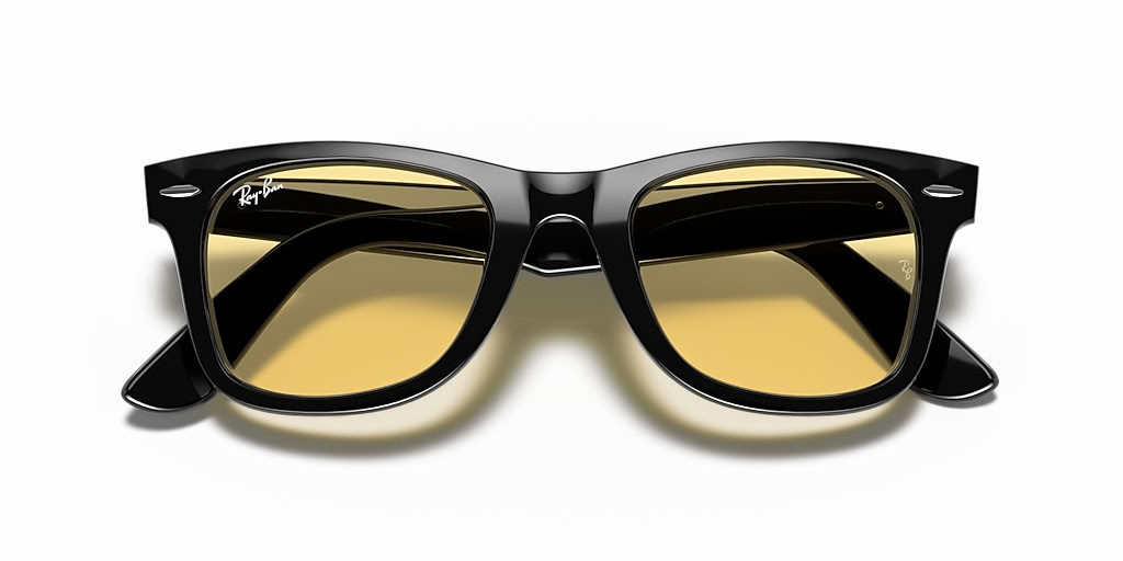 Ray-Ban RB2140F Originele Wayfarer Classic L (52 - 22) met Gele lenzen en Zwart frame Zonnebrillen