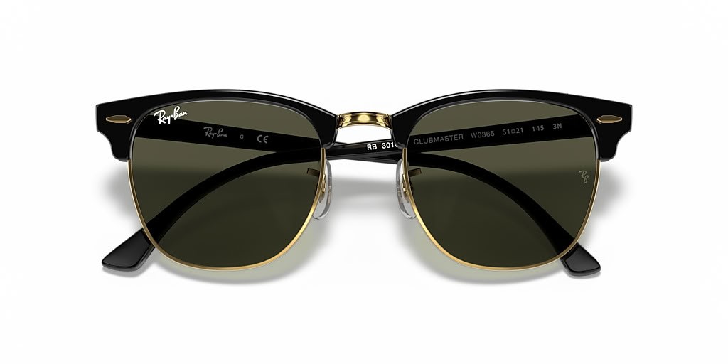 Ray-Ban RB3016F Clubmaster Classic XL (55 - 19) met Groene lenzen en Zwart frame Zonnebrillen