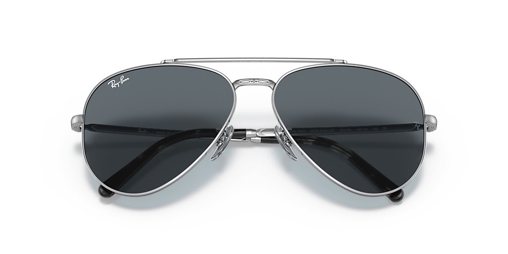 Ray-Ban RB3625 Nieuwe Aviator XXL (62 - 14) met Blauwe lenzen en Zilver frame Zonnebrillen
