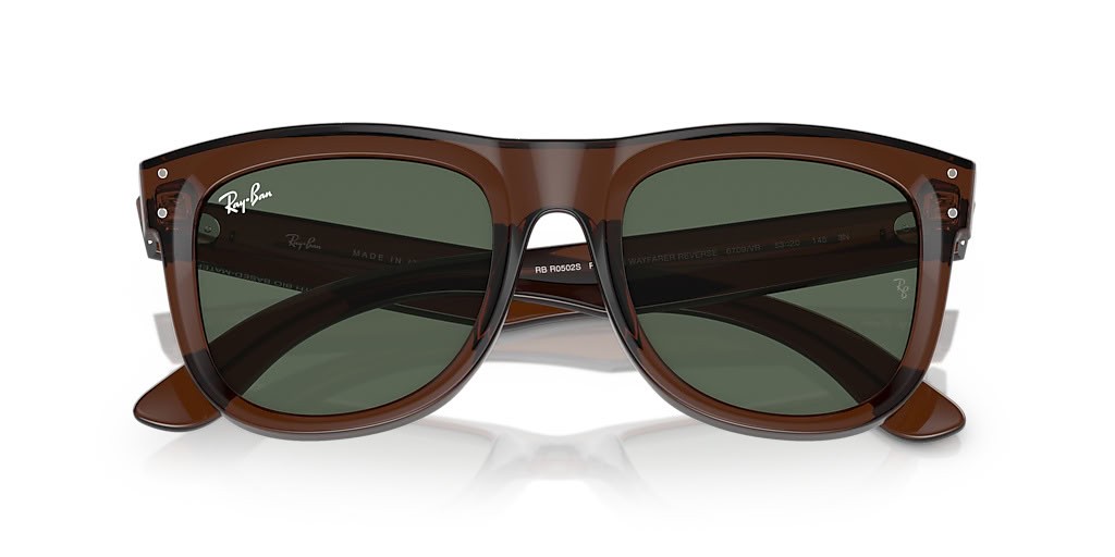 Ray-Ban RBR0502S Wayfarer Omgekeerde S (50 - 22) met Groene lenzen en Bruin frame Zonnebrillen