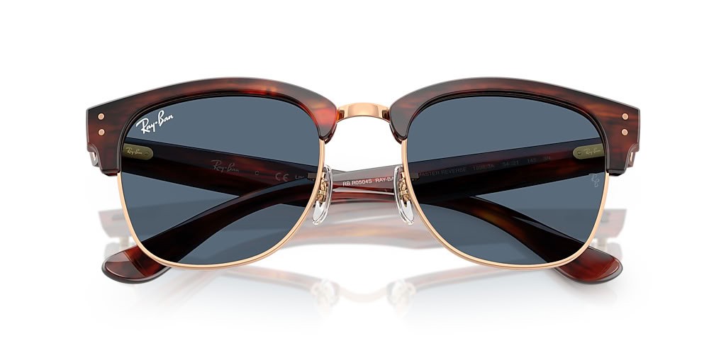 Ray-Ban RBR0504S Clubmaster Omgekeerde S (51 - 21) met Blauwe lenzen en Goud frame Zonnebrillen