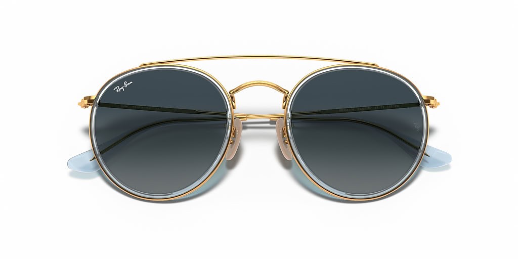 Ray-Ban RB3647N Runde Dobbel Bro M (51 - 22) med Blå linser og Gull frame Solbriller