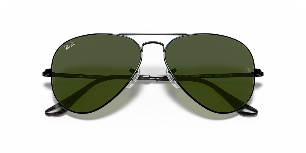 Ray-Ban RB3689 Aviator Metall II M (55 - 14) med Grønne linser og Svart frame Solbriller