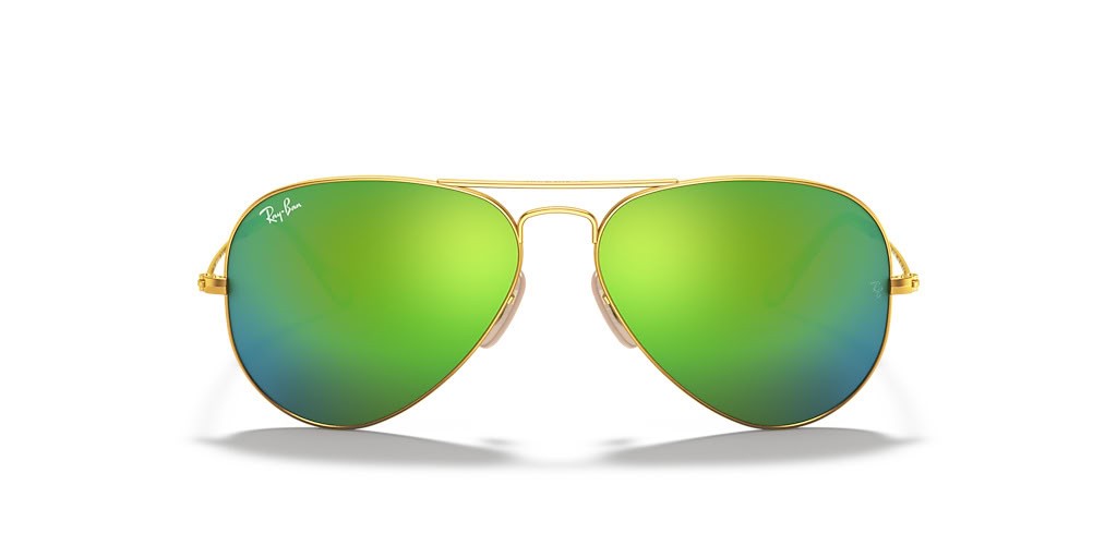Okulary przeciwsłoneczne Ray-Ban RB3025 Aviator z lampą błyskową M (55-14) z zielonymi soczewkami i złotej oprawce