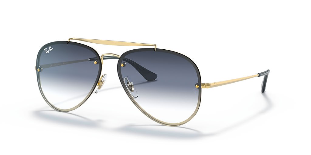 Okulary przeciwsłoneczne Ray-Ban RB3584N Blaze Aviator XL (61-13) z niebieskimi soczewkami i złotej oprawce