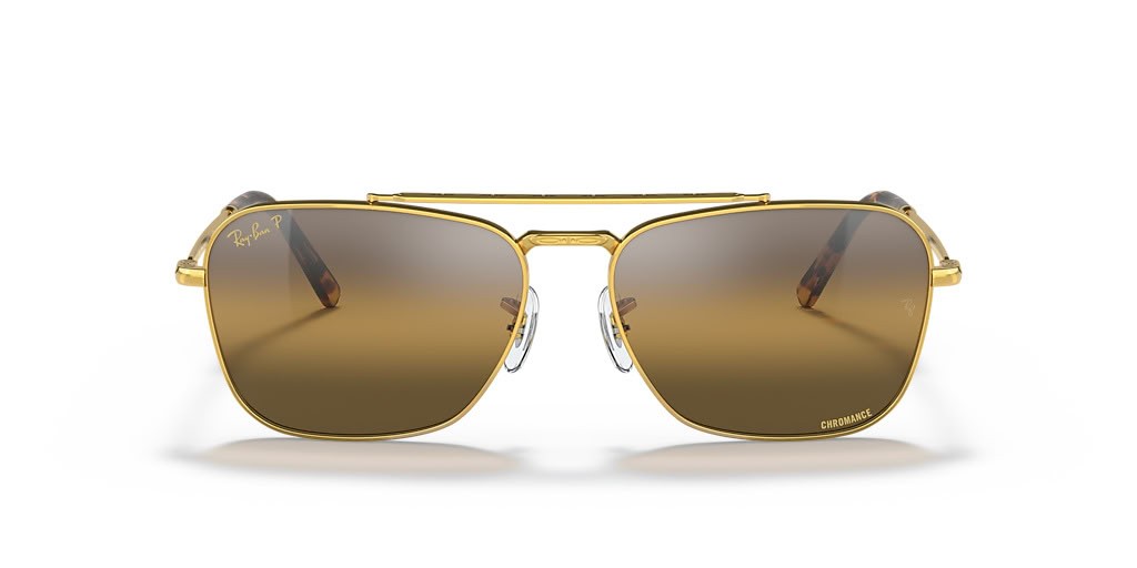 Okulary przeciwsłoneczne Ray-Ban RB3636 New Caravan M (55-15) z brązowymi soczewkami i złotej oprawce