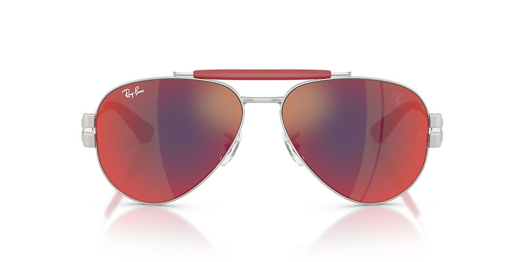 Okulary przeciwsłoneczne Ray-Ban RB3762M Scuderia Ferrari Collection XL (58-14) z szarymi soczewkami i srebrnej oprawce