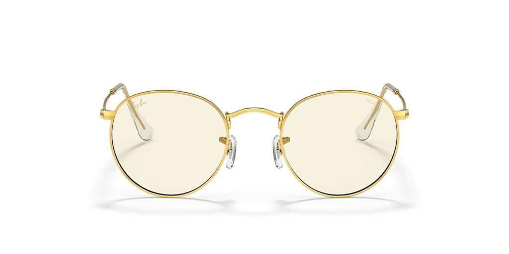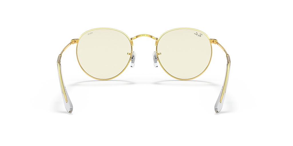 Ray-Ban RB3447 Rodada de Luz Azul Clara Evoluir S (50 - 21) com lentes Transparentes e moldura de Ouro Óculos de sol