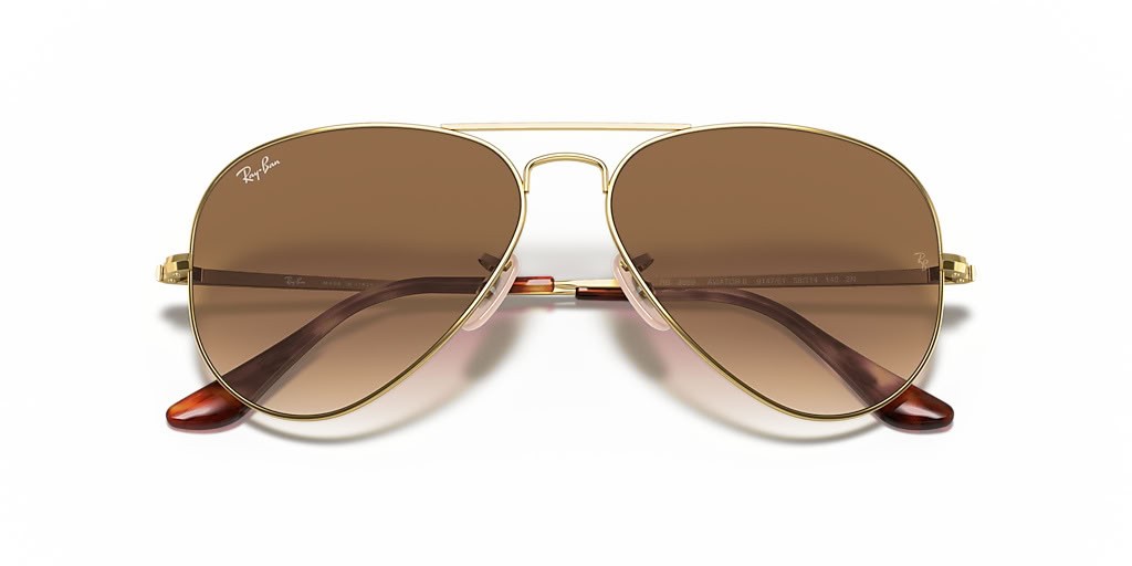 Ray-Ban RB3689 Aviador, Metal II L (58 - 14) com lentes Marrom e Ouro armação Óculos de sol