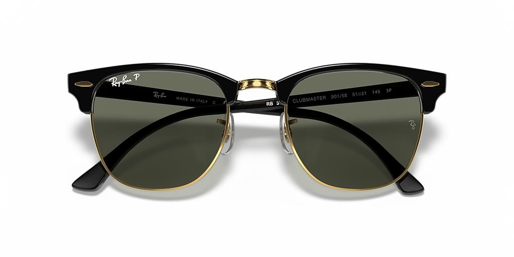 Ray-Ban RB3016 Clubmaster Classic L (51 - 21) s Zelené šošovky a Čierny rám slnečné Okuliare