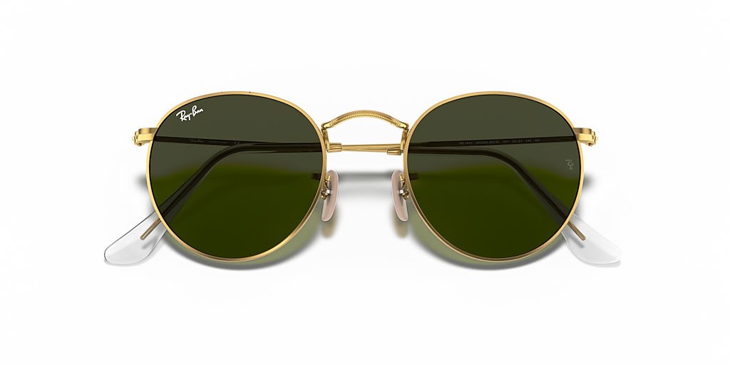 Ray-Ban RB3447 Okrúhle Kovové XS (47 - 21) s Zelené šošovky a Zlato rámom slnečné Okuliare
