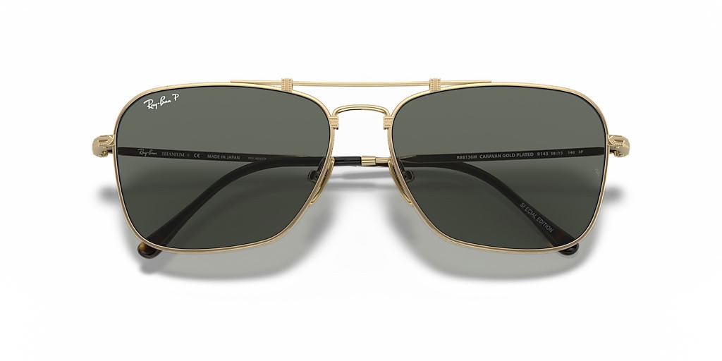 Ray-Ban RB8136M Caravan Titán XL (58 - 15) s Zelené šošovky a Zlato rámom slnečné Okuliare