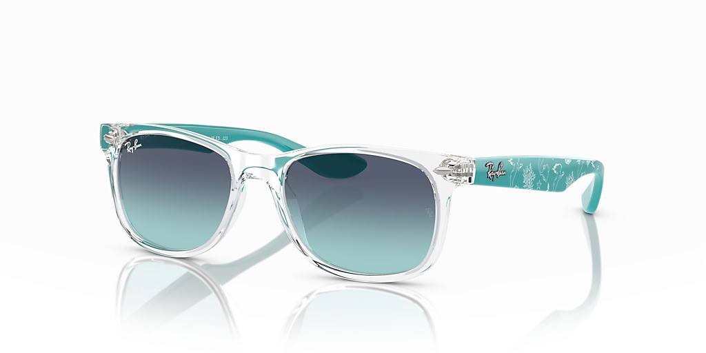 Ray-Ban RB9052S New Wayfarer Deti, Malá Morská víla S (47 - 15) s Modrým šošovky a Transparentné rámom slnečné Okuliare