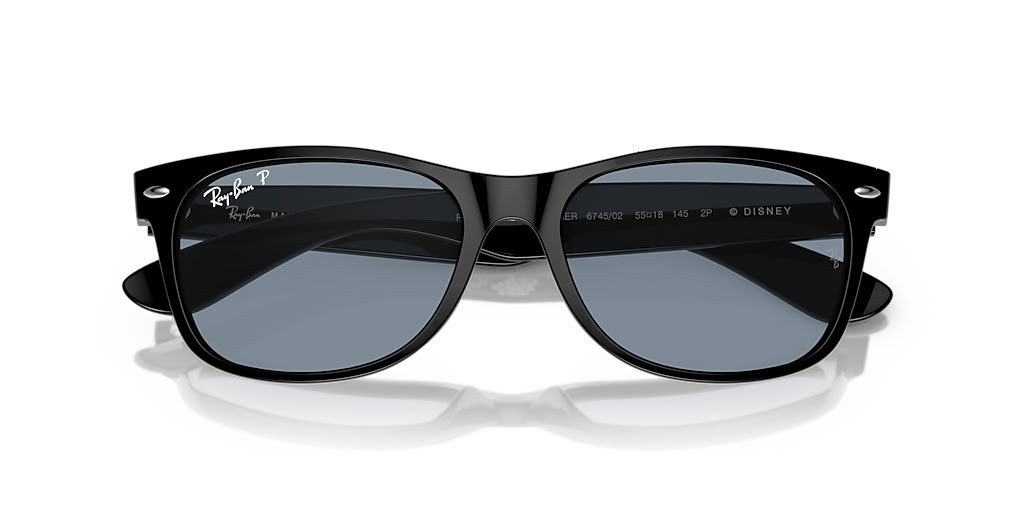 Ray-Ban RB2132 Yeni Wayfarer Küçük Denizkızı M (55-18) Mavi lensler ve Siyah çerçeve Güneş Gözlüğü