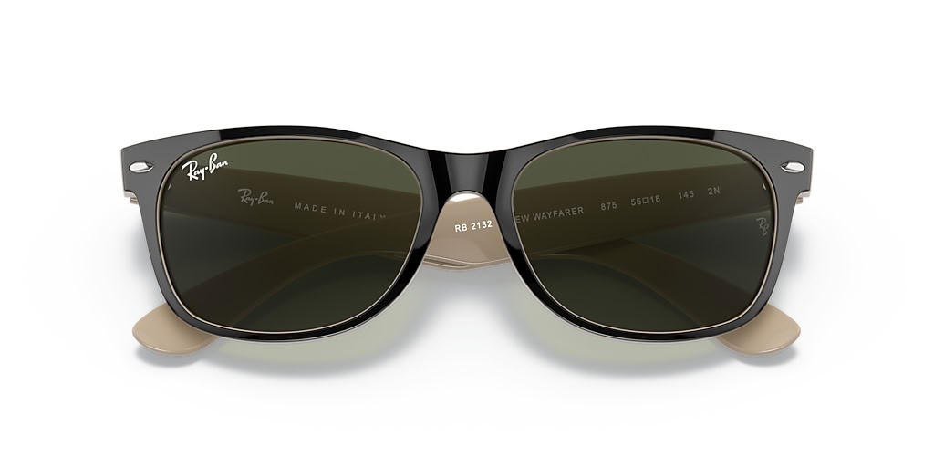 Ray-Ban RB2132 Yeni Wayfarer Renk Karışımı M (55-18) Yeşil lensler ve Siyah çerçeve Güneş Gözlüğü
