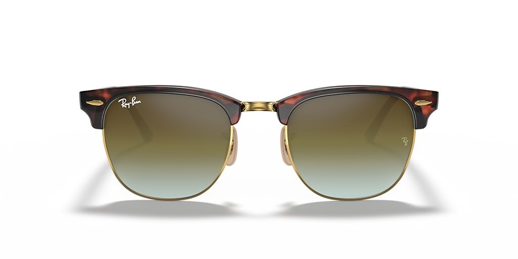 Ray - Ban RB3016 Clubmaster Flaş Lensler L (51-21) Yeşil lensler ve Kaplumbağa çerçeve Güneş Gözlüğü